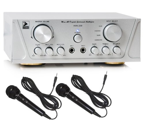 200W Heimkino Verstärker HVA-200 si + 2x Mikrofon