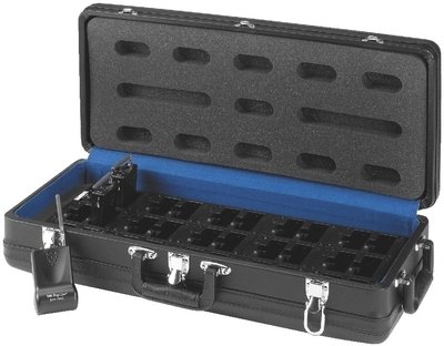 Transportkoffer mit integrierter Ladefunktion für die Sender und Empfänger der ATS-10-Serie Gleichzeitiges Laden der Akkus von bis zu 30 Geräten LED-Lade-Kontrollanzeige pro Geräteschacht Transportkoffer mit schwarzem Kunstlederbezug Lieferung mit passendem Netzteil Abmessungen 660x170x300mm Lieferung ohne Geräte.für die Sender und Empfänger der ATS-10-Serie